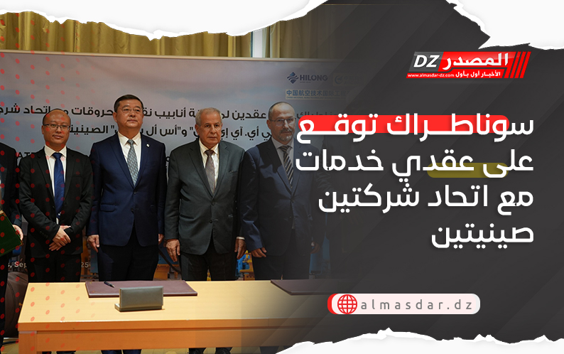 وقعت سوناطراك، اليوم، على عقدي خدمات مع اتحاد الشركتين الصينيتين “سي أي. آي إي.سي” (الشركة الوطنية الصينية للتكنولوجيا الجوية الدولية) و”أس. أل. بي. آي ” (الشركة المحدودة لتكنولوجيا فحص أنابيب النفط والغاز).