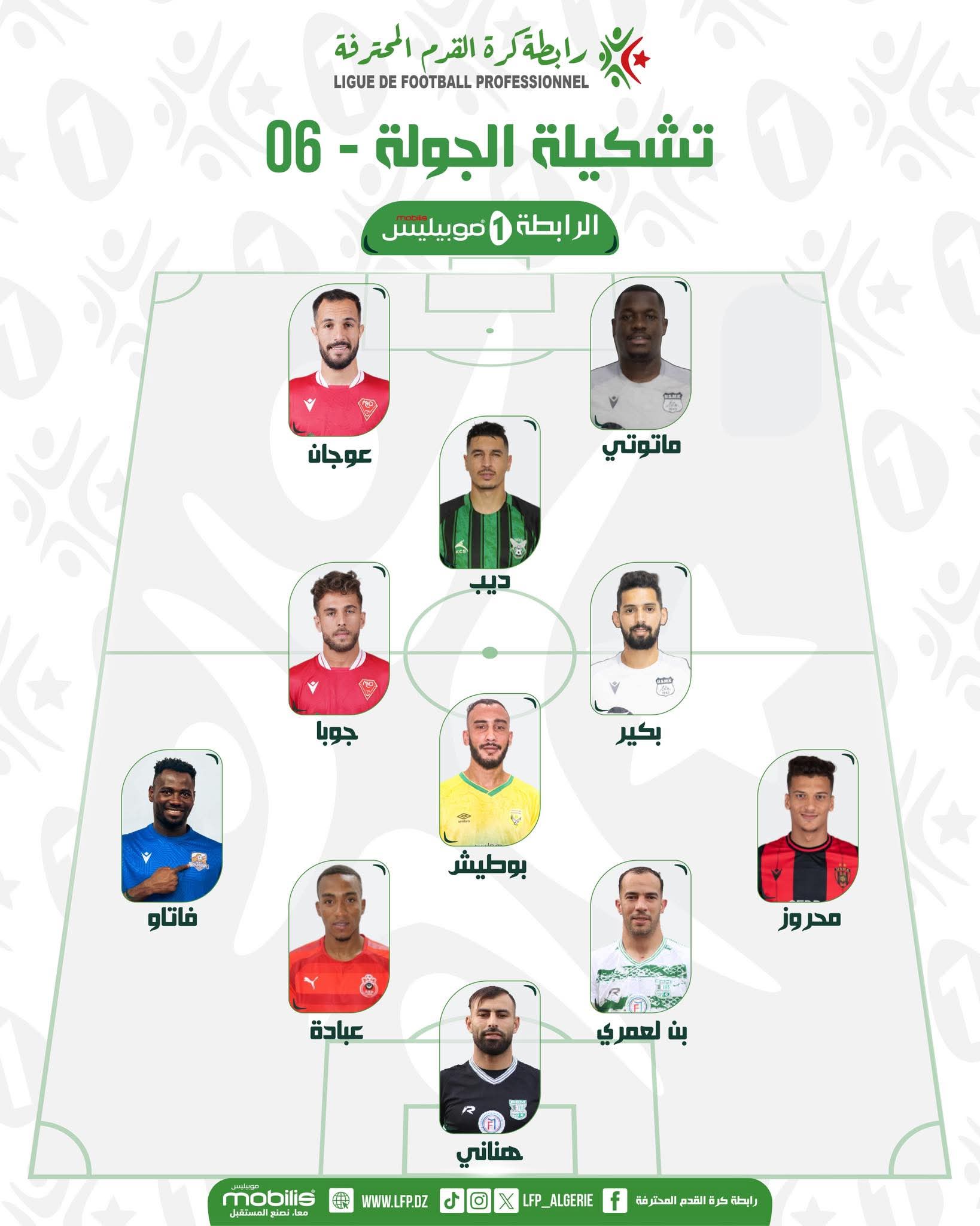كشفت الرابطة المحترفة لكرة القدم، عن تشكيلة الجولة الـ 6 من البطولة المحترفة للموسم الكروي الحالي 2025-2026.