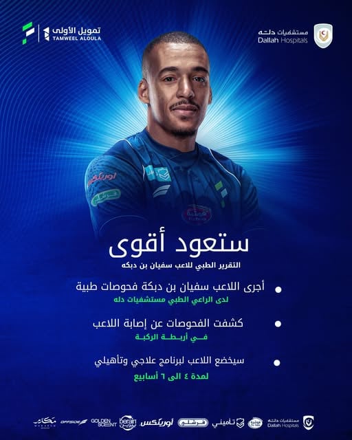 ليتقرر خضوعه لبرنامج علاجي وتأهيلي يمتد من 4 إلى 6 أسابيع، ما يشكل ضربة قوية للفريق في منافسات الدوري.