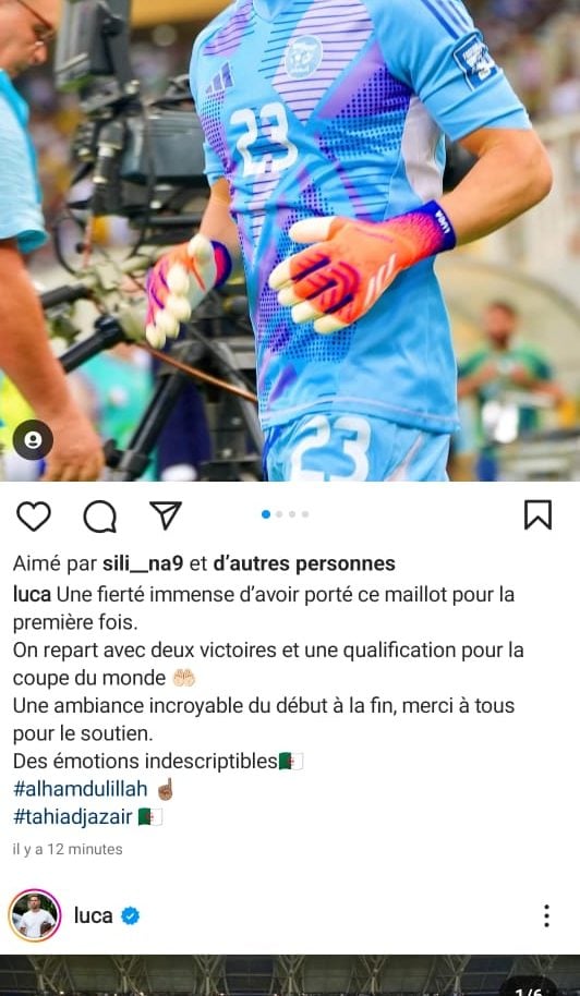 ونشر زيدان عبر حسابه الرسمي على إنستغرام صورة له من المباراة، مرفقة بتعليق مؤثر كتب فيه: “فخر كبير بارتداء هذا القميص للمرة الأولى نغادر بانتصارين وتأهل إلى كأس العالم، أجواء خيالية من البداية إلى النهاية، شكرًا للجميع على الدعم، مشاعر لا توصف”.
