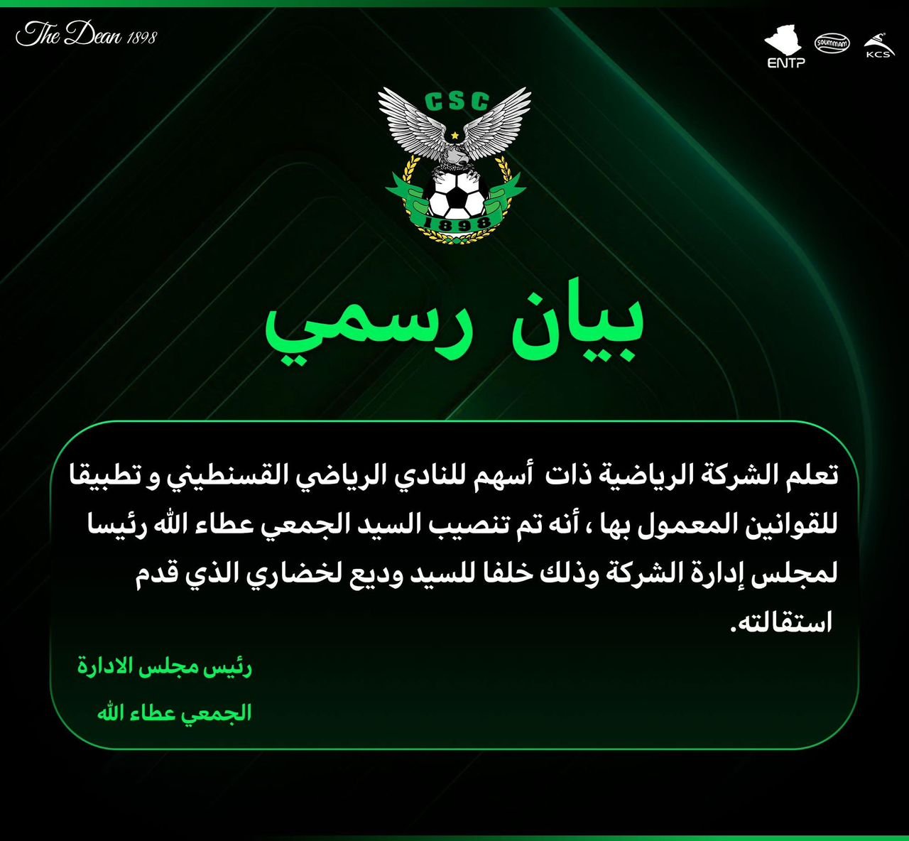 الجـمعي عطـاء الله رئيسًا جديدًا لمجلس إدارة شباب قسنطينة – النهار أونلاين