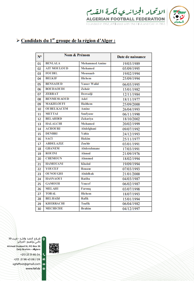 وحسبل الموقع الرسمي لـ”الفاف”، تضم هذه المجموعة الأولى المشاركة في التكوين الفدرالي للمحضّرين البدنيين النخبة، 30 مشاركا.